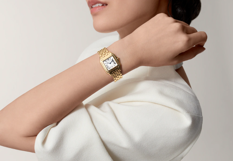 The flexible, articulated gold Panthère bracelet is not only a hallmark of the collection’s aesthetic but also offers standout comfort and movement — like jewellery on the wrist.