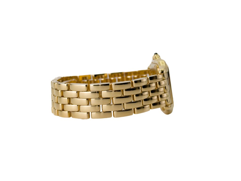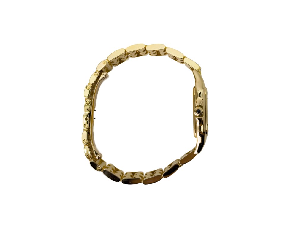 The Cartier Panthère de Cartier WGPN0009 is a luxurious, jewellery-inspired timepiece in fully 18K yellow gold. It's combining Cartier’s signature elegance with haute joaillerie craftsmanship. With its medium-sized squared case (27 × 37 mm), silvered dial, Roman numerals, and sleek gold bracelet, this model captures the fluid grace of the panther — a long-standing Cartier emblem.