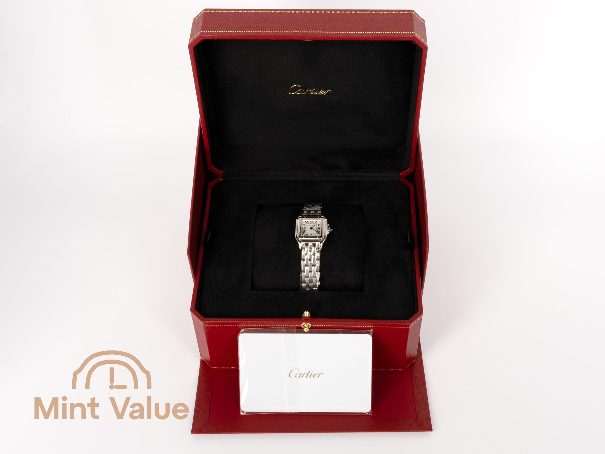The essence of elegance. The Cartier Panthère Ref. WSPN0013 is more than a watch — it is an icon of grace and movement. Introduced in the 1980s and reimagined for the modern era, it reflects Cartier’s mastery of fluid design. Crafted in polished stainless steel with a silvered dial and Roman numerals, it captures the quiet strength and sophistication that define the Maison’s feminine creations.