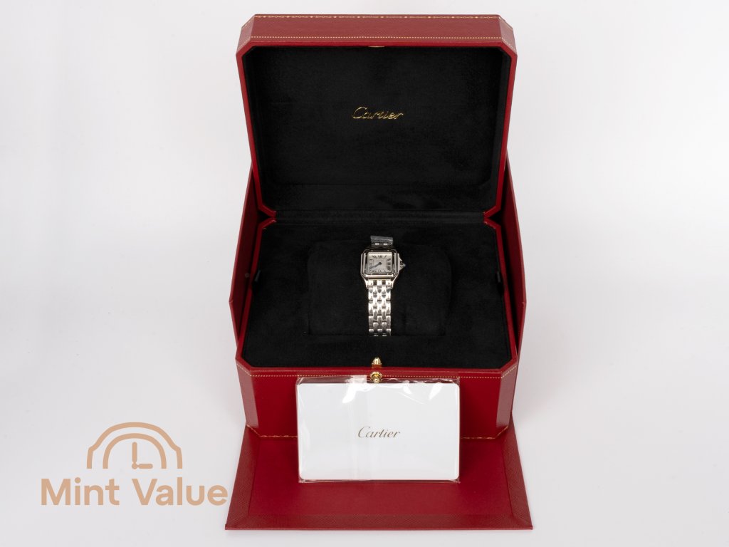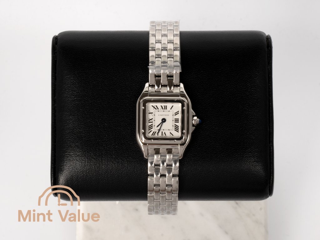 The essence of elegance. The Cartier Panthère Ref. WSPN0013 is more than a watch — it is an icon of grace and movement. Introduced in the 1980s and reimagined for the modern era, it reflects Cartier’s mastery of fluid design. Crafted in polished stainless steel with a silvered dial and Roman numerals, it captures the quiet strength and sophistication that define the Maison’s feminine creations.