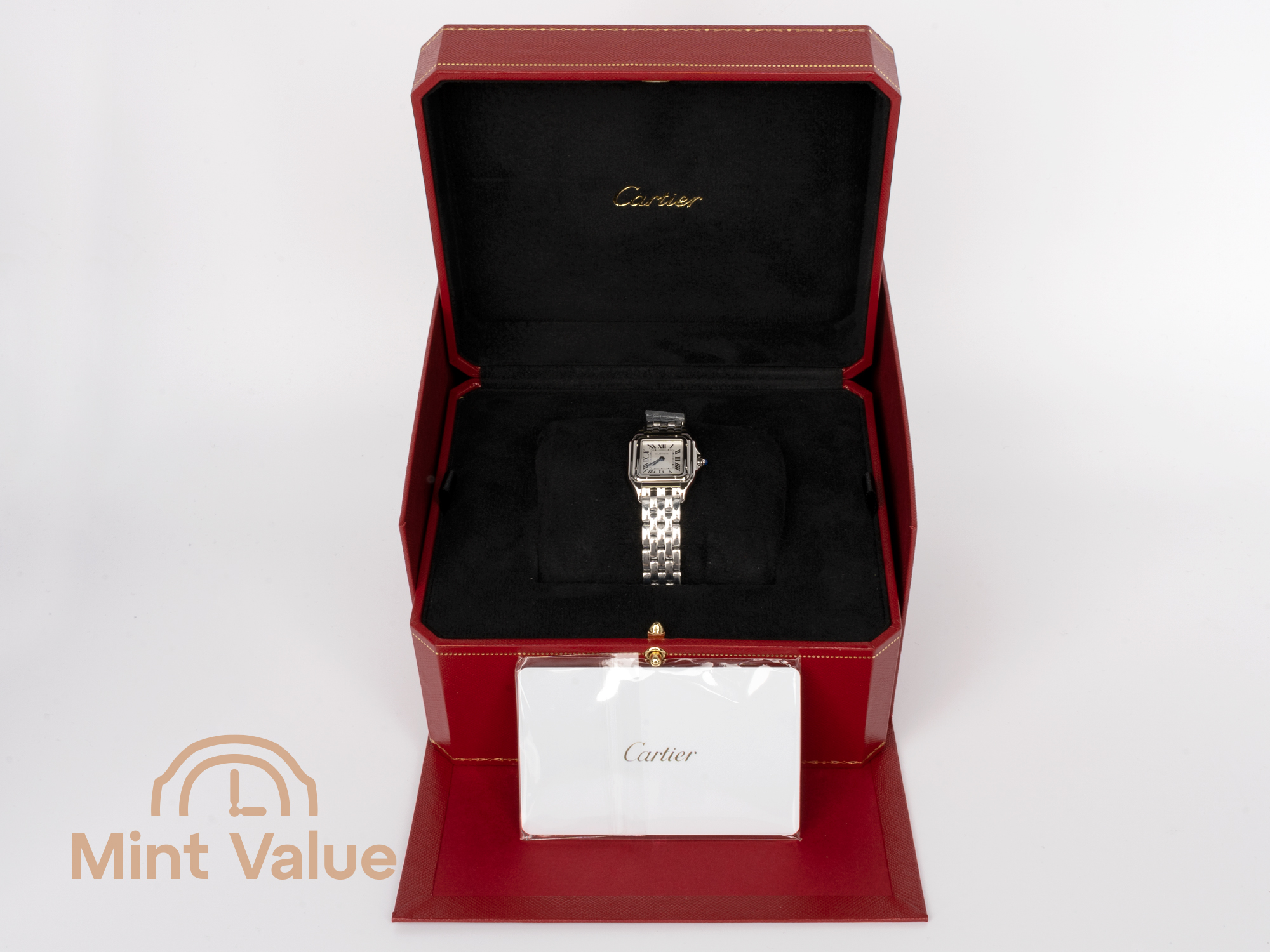 Esenciální elegance. Hodinky Cartier Panthère Ref. WSPN0013 jsou více než jen hodinky — jsou ikonou půvabu a pohybu. Byly uvedeny na trh v 80. letech a pro moderní dobu byly přepracovány tak, aby odrážely mistrovství Cartier v plynulém designu. Jsou vyrobeny z leštěné nerezové oceli se stříbrným ciferníkem a římskými číslicemi a zachycují tichou sílu a sofistikovanost, které definují ženské kreace Maison.