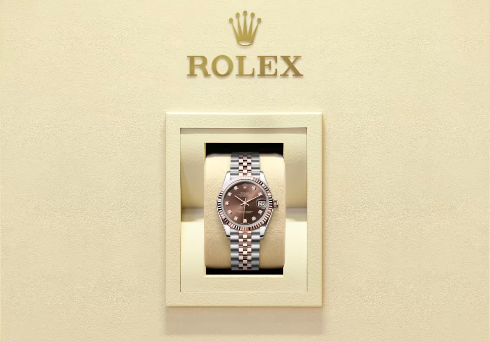 Pouzdro o průměru 31 mm nabízí elegantní proporce, které doplňují zápěstí bez nadbytečnosti. Spojení Everose Rolesor – exkluzivní slitiny růžového zlata Rolex – s teplým čokoládovým odstínem vytváří hloubku barvy a textury, která působí současně moderně i nadčasově.