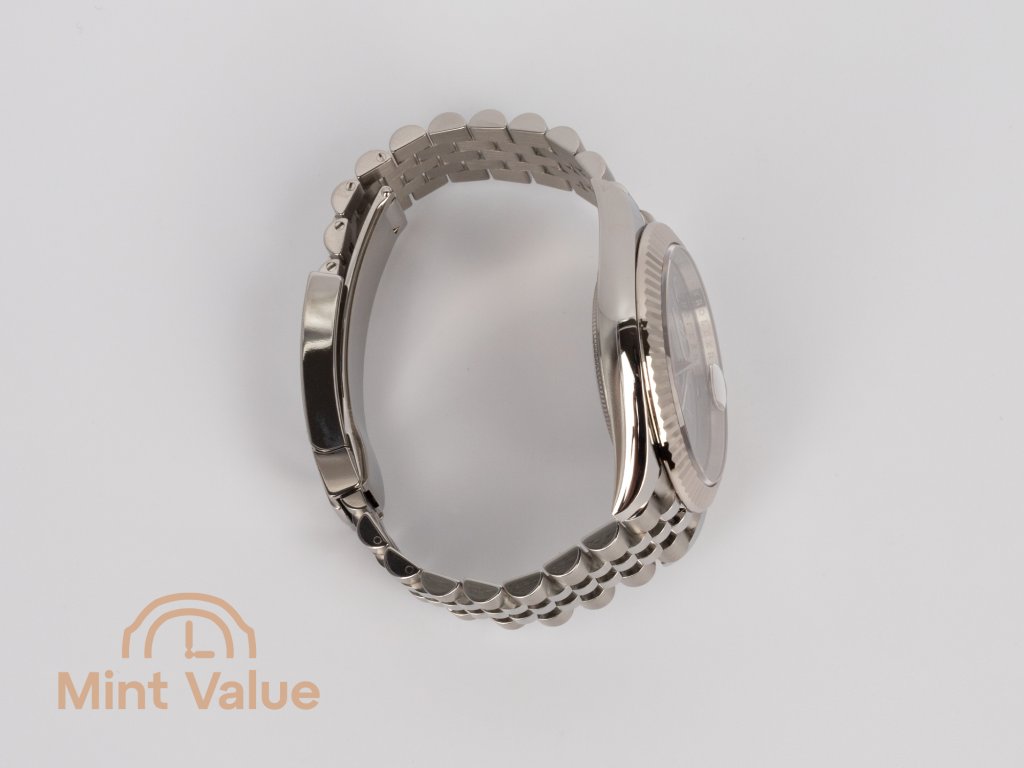 Moderní ikona s výrazným charakterem. Model Datejust 41 Ref. 126334 spojuje nadčasový design Rolexu s moderním, sebevědomým vzhledem. Je vyroben z bílého Rolesoru – kombinace odolné oceli Oystersteel a rýhované lunety z 18karátového bílého zlata – a vyzařuje rafinovanou univerzálnost. Šedý ciferník se slunečním vzorem a zelenými římskými číslicemi, známý mezi sběrateli jako ciferník Wimbledon, dodává hloubku, kontrast a nezaměnitelnou osobnost. Náramek Jubilee dotváří estetiku plynulou ergonomií a trvalým komfortem.