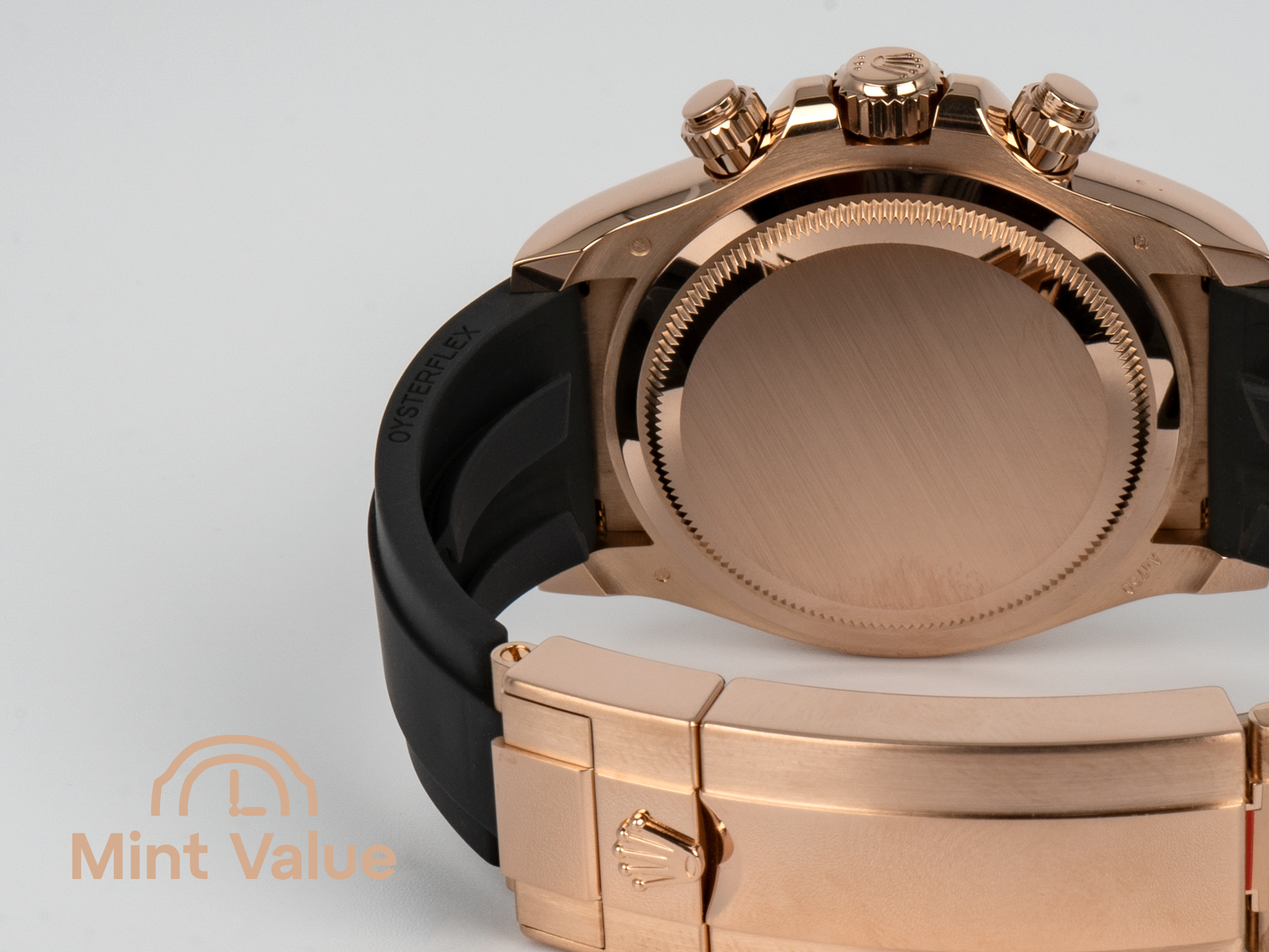 18karátové zlato Everose, které je vlastnictvím společnosti Rolex, si zachovává svůj teplý růžový odstín i po dlouhé době. V kombinaci s černou lunetou dosahují hodinky nápadného kontrastu, který působí moderně a zároveň nadčasově.