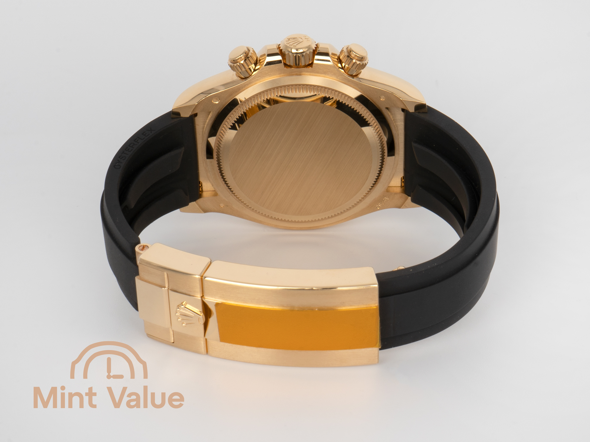 Pouzdro Oyster o průměru 40 mm z 18karátového žlutého zlata je doplněno černou monoblokovou lunetou Cerachrom z keramiky – materiálu, který je odolný proti korozi, prakticky nepoškrábatelný a odolný vůči UV záření. Náramek Oysterflex kombinuje robustnost kovového náramku s pohodlím elastomerového řemínku a je vybaven bezpečnostní sponou Oysterlock ze žlutého zlata.