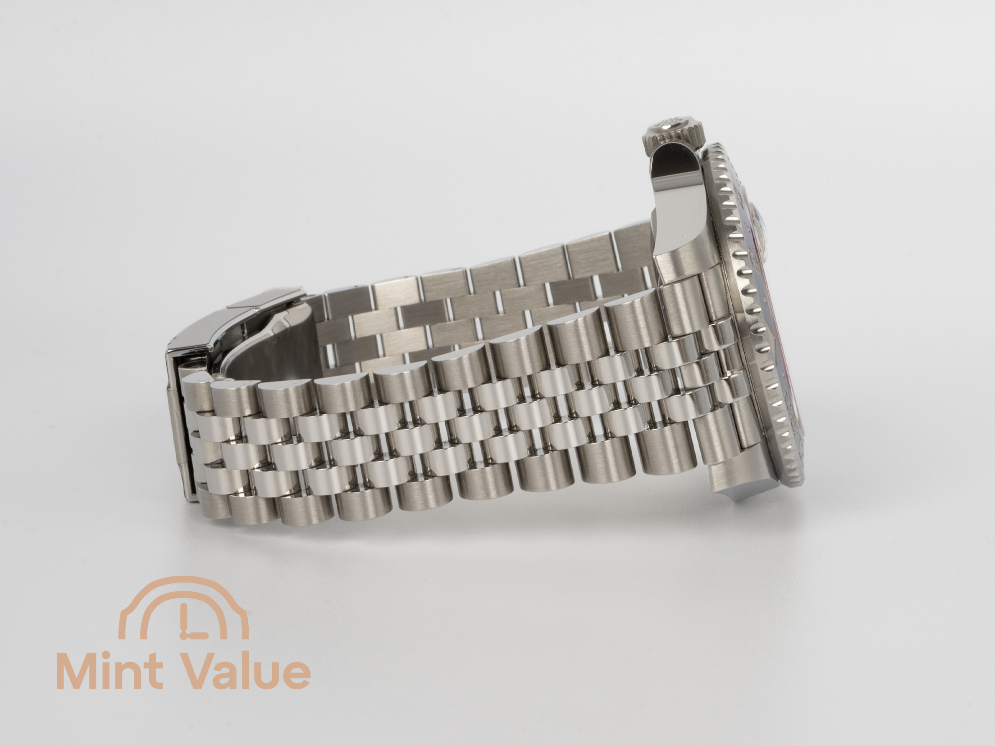 Tato konfigurace, exkluzivně doplněná pětidílým náramkem Jubilee, nabízí sofistikovanější a elegantnější interpretaci modelu GMT-Master II. Náramek je vybaven sponou Oysterlock a systémem Easylink, který umožňuje okamžité prodloužení až o 5 mm.