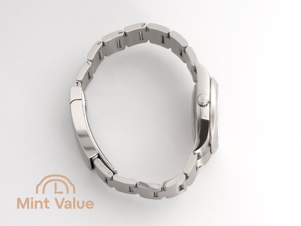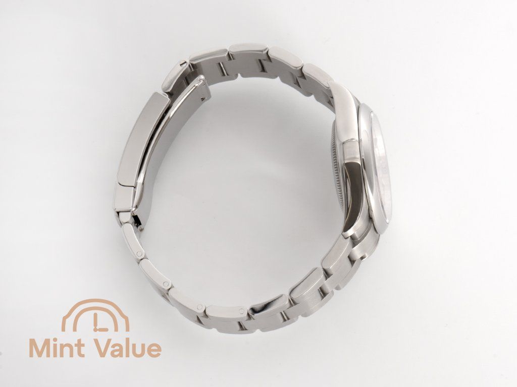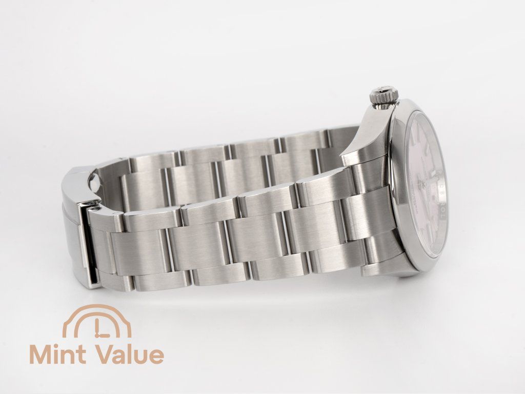 Pouzdro o průměru 34 mm, vyrobené výhradně z oceli Oystersteel, nabízí odolnost, odolnost proti korozi a vyváženou přítomnost na zápěstí, která se hodí jak pro každodenní nošení, tak pro slavnostnější příležitosti. Tato konfigurace vyniká svou charakteristickou barvou, přičemž si zachovává nezaměnitelný styl a kvalitu Rolex.