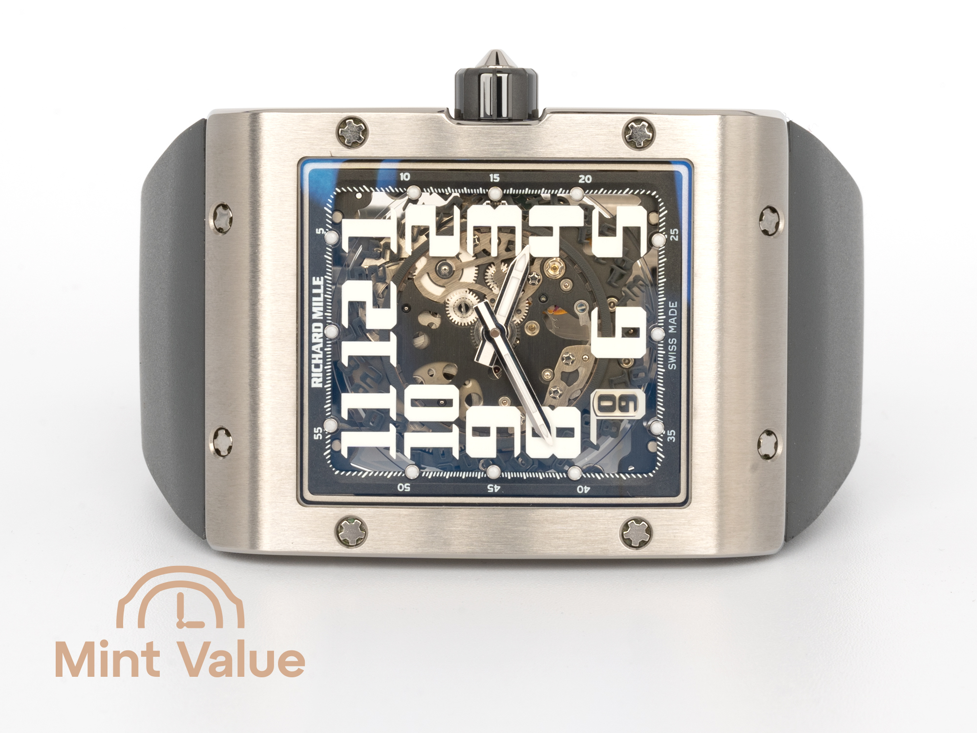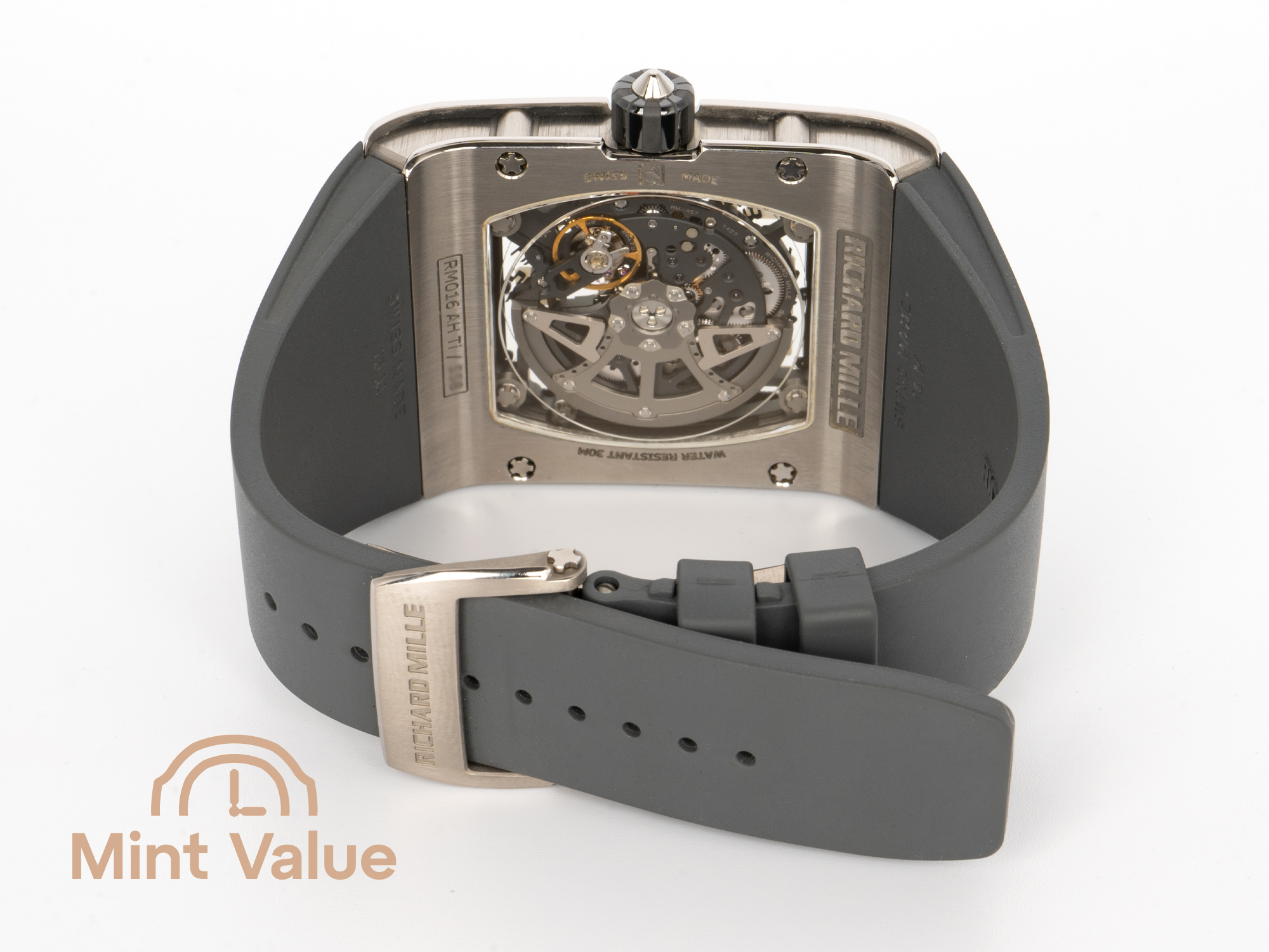 Unlike traditional round or tonneau-shaped cases, the RM 016 Ti emphasizes a restrained rectangular form with soft edges and sharp geometric intent. The result is a watch that feels modern and purposeful, communicating structural precision without unnecessary ornamentation.