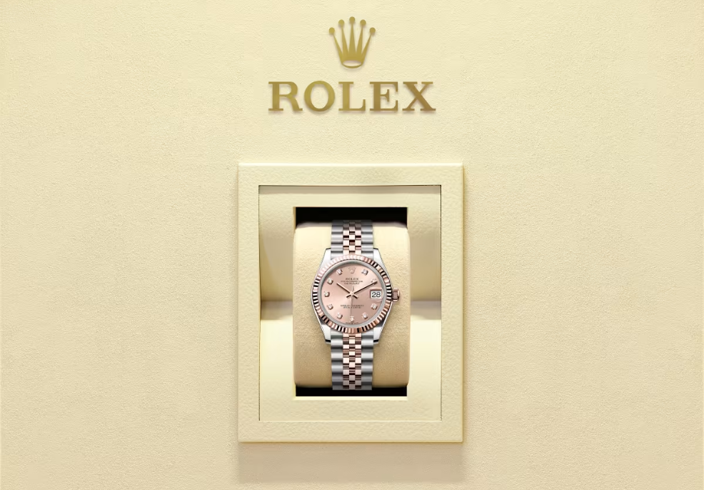The warm tone of 18 ct Everose gold, contrasted with the cool luster of steel, makes this configuration one of the most graceful in the collection. The fluted bezel reflects light with signature Rolex brilliance, while the Jubilee bracelet ensures exceptional comfort and fluidity on the wrist.