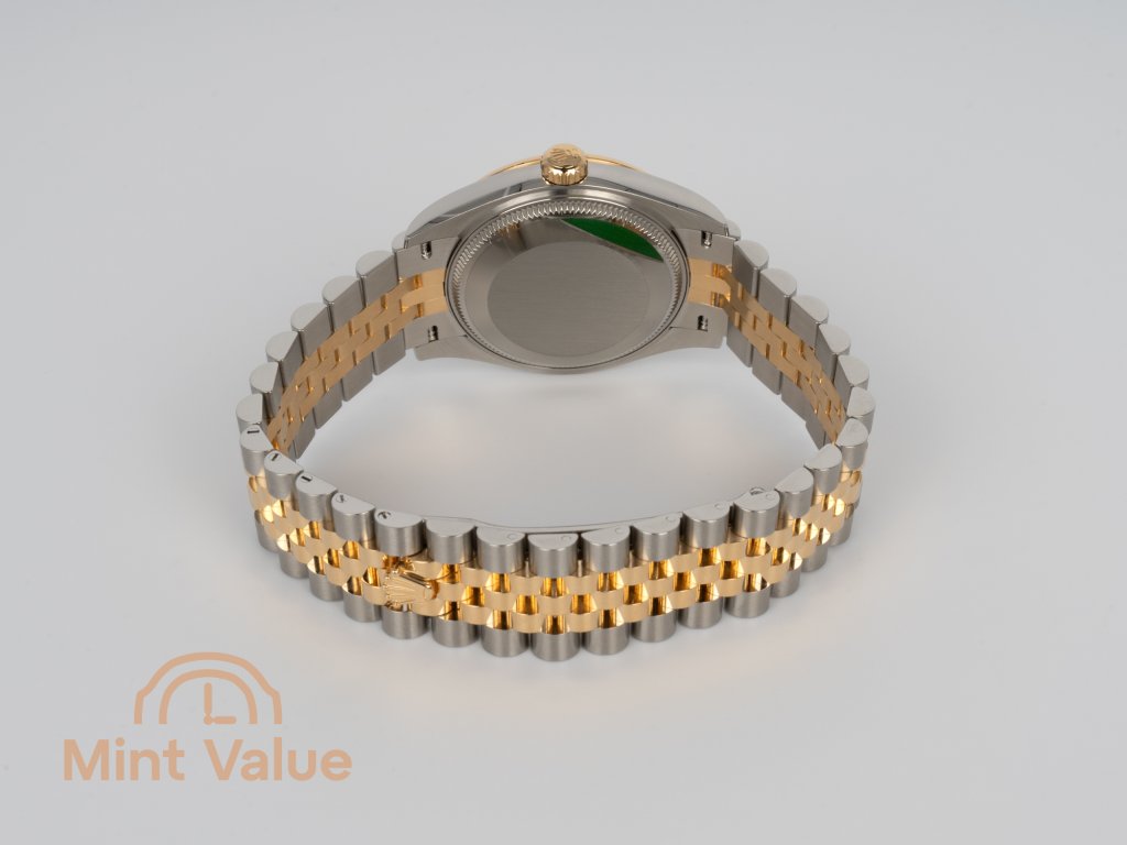 Each diamond is set in 18ct gold to ensure lasting brilliance, while the fluted bezel and Jubilee bracelet highlight Rolex’s meticulous artistry. The grey dial introduces depth and modernity — a graceful alternative to the more traditional tones in the Datejust family.