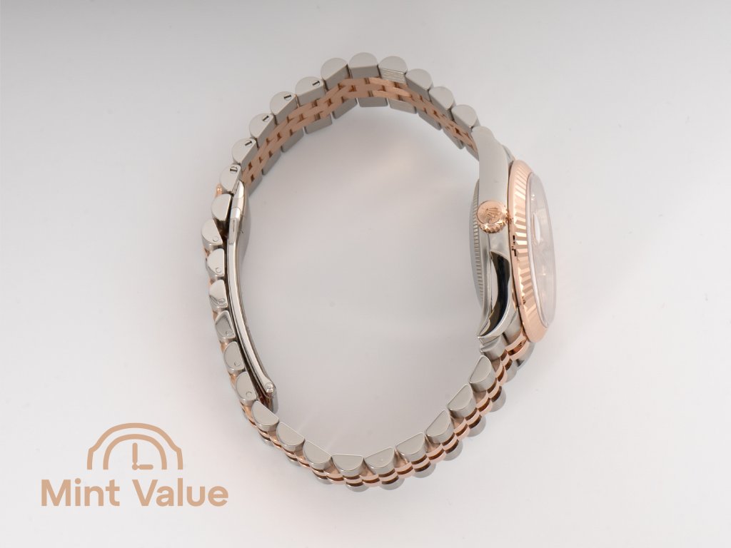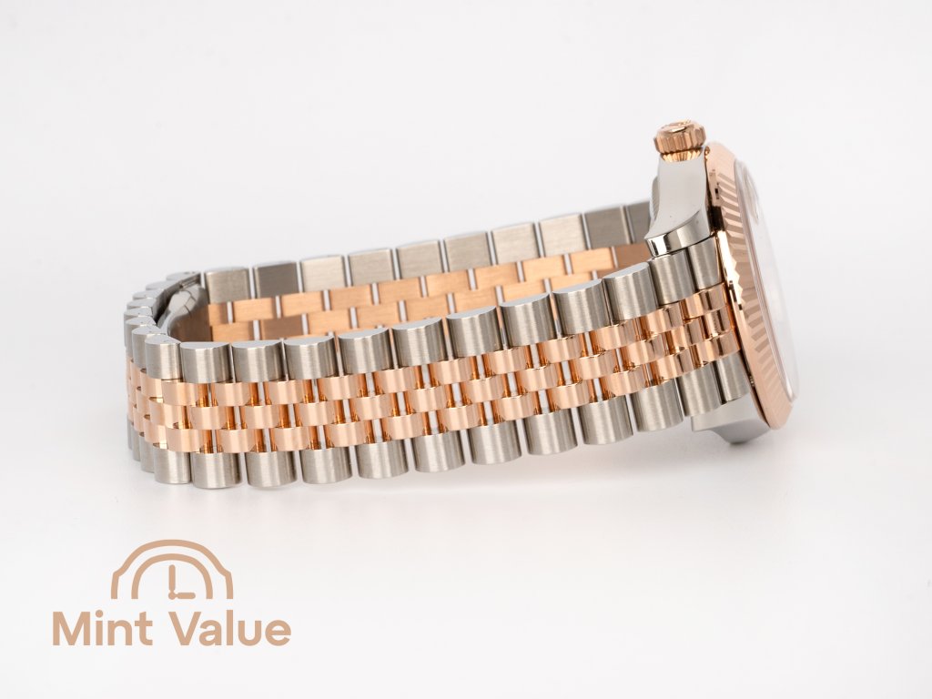 Rolesor Datejust models — especially those with diamond dials — have proven to hold value exceptionally well. The Everose configuration with fluted bezel and Jubilee bracelet ranks among the most desirable, with consistent demand from collectors.