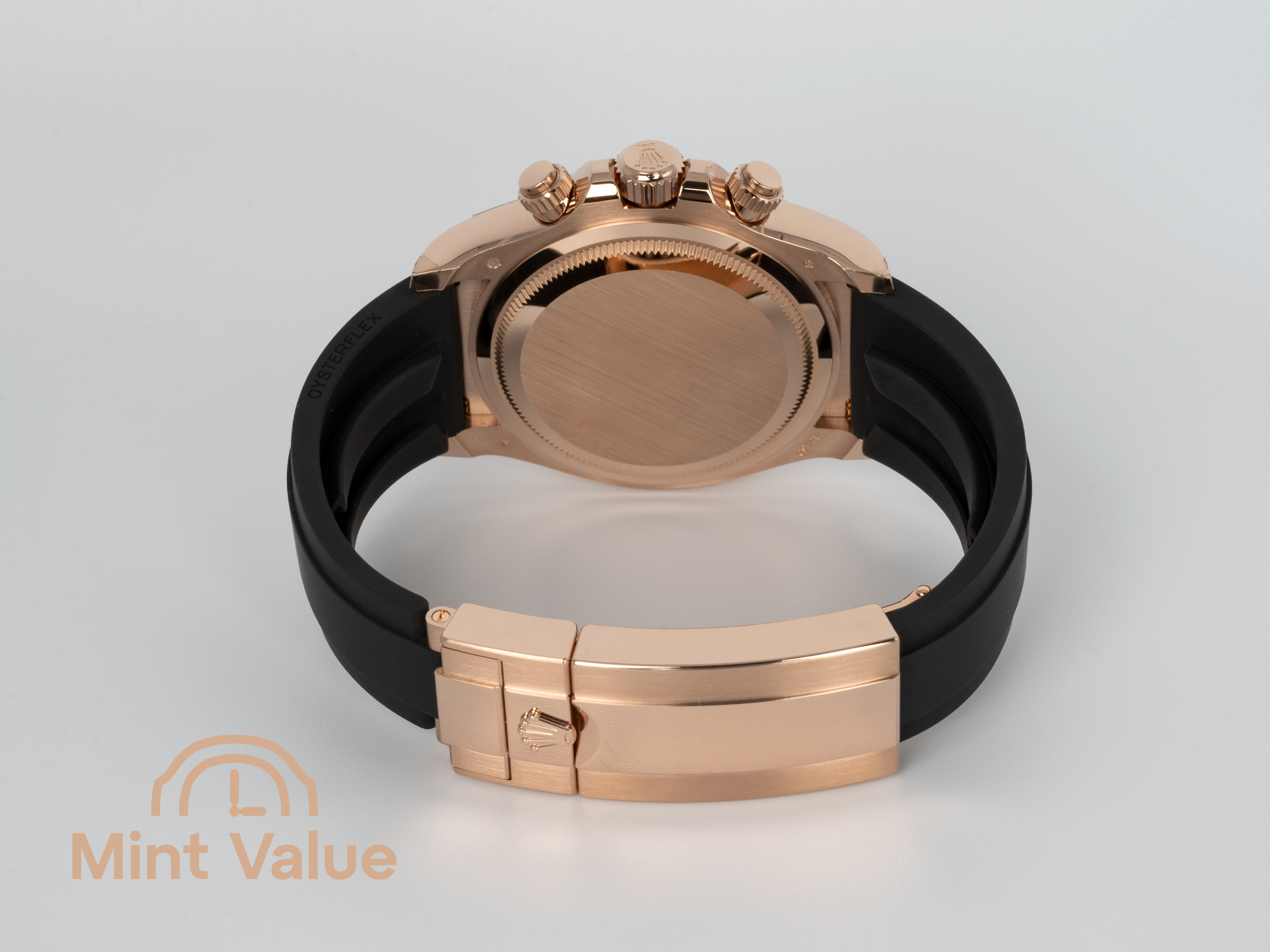 Crafted in Everose gold and mounted on an Oysterflex bracelet with Everose clasp, this reference offers both advanced construction and luxurious elegance. The black ceramic bezel with engraved tachymetric scale emphasises the model’s connection to racing timing.