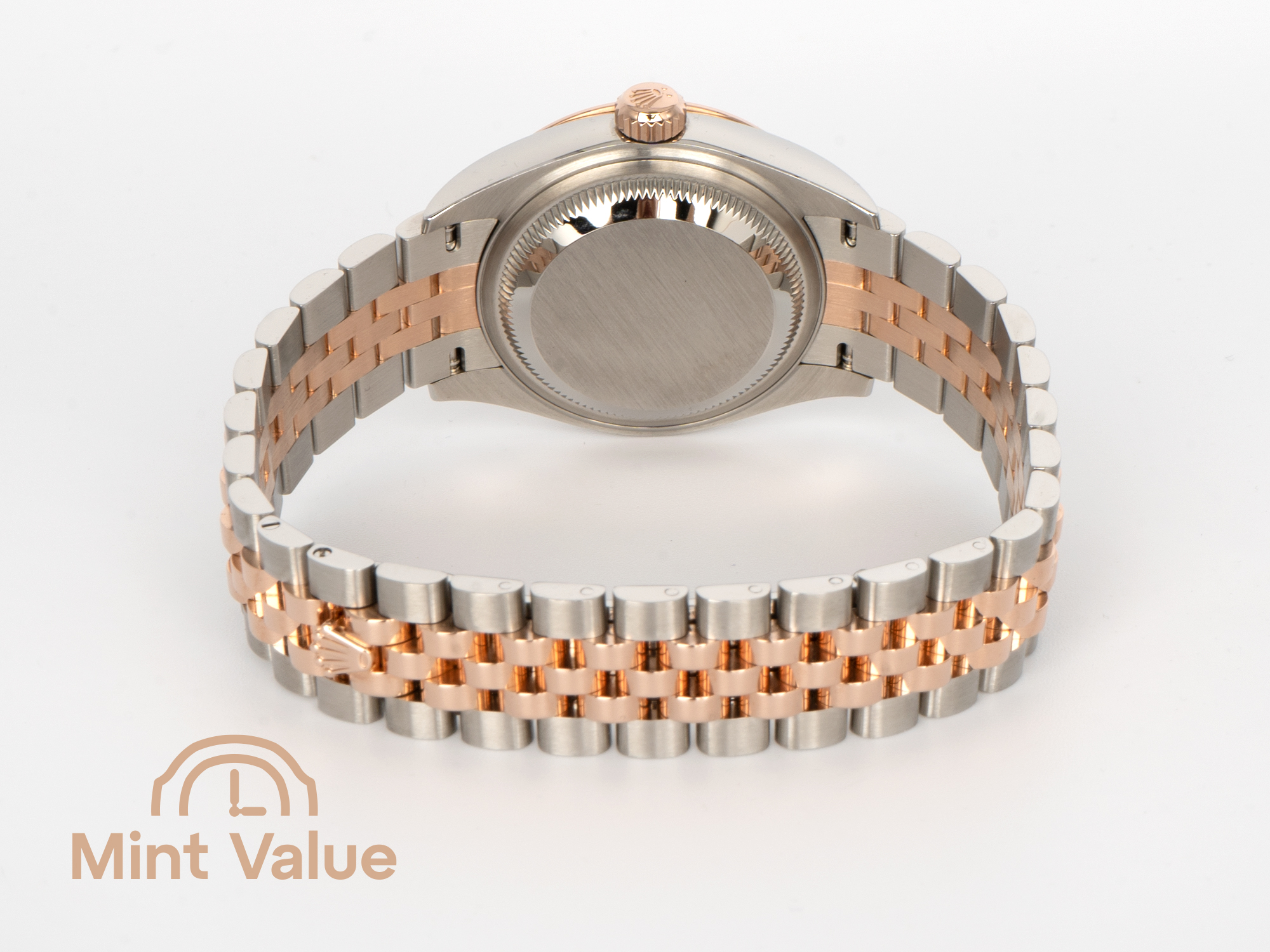 The Ref. 279171 pairs stainless steel with Rolex’s proprietary Everose gold, creating a warm, contemporary contrast. Its rose-toned dial adds softness and depth, lending the watch a refined presence that feels equally appropriate for everyday wear and formal occasions.